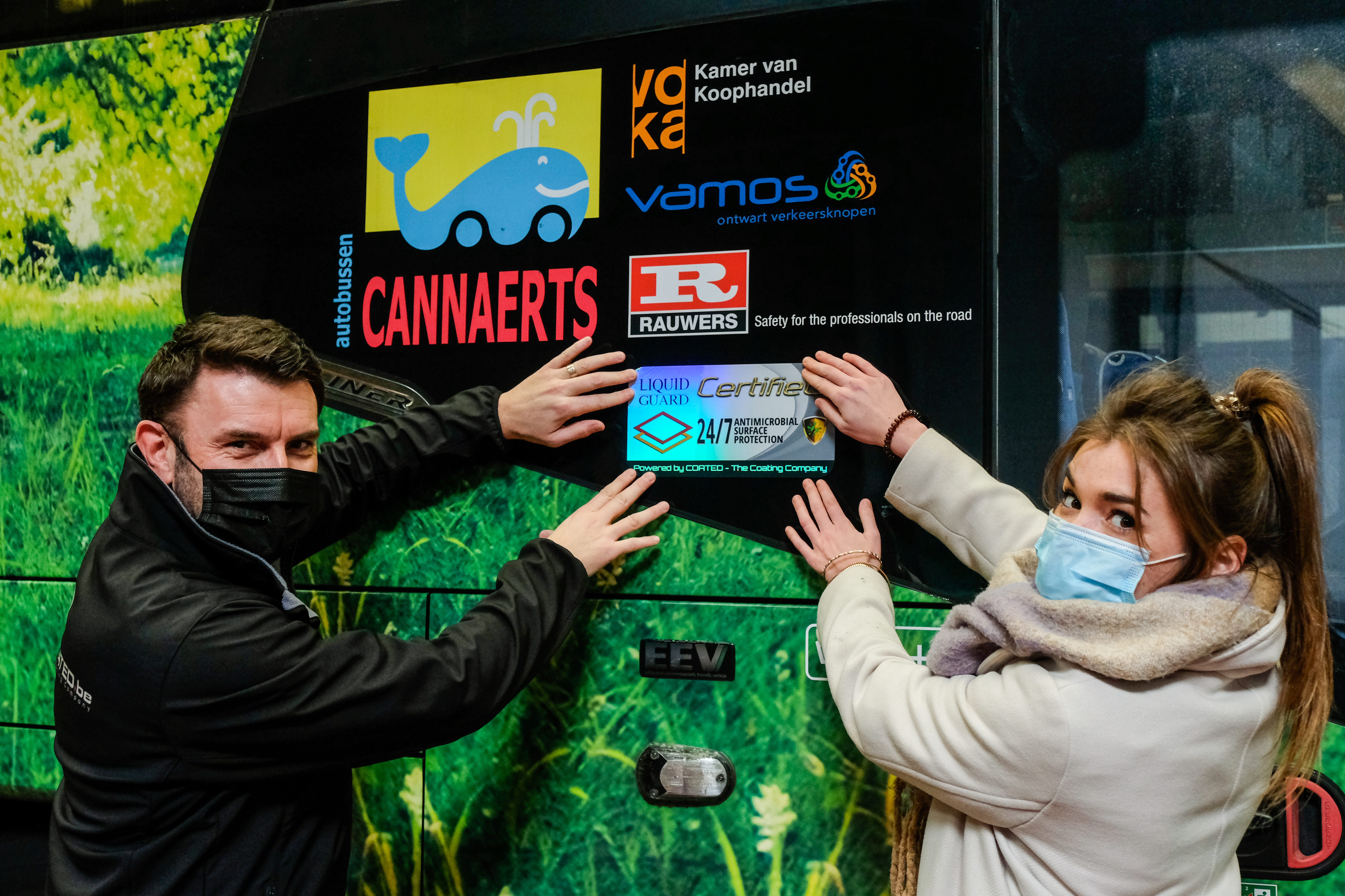 Samen op weg naar een hoopvol en veiliger 2021? Autobussen Cannaerts zet al een hele tijd resoluut in op Corona preventie om het voor hun passagiers zo veilig mogelijk te maken. Zo werden er heel snel plexi schermen geplaatst, werd er een aangepaste reinigingsprocedure voorzien en werden er duidelijke pictogrammen geplaatst aan boord. Autobussen Cannaerts gaat in 2021 een stapje verder en ging een samenwerking aan met de firma Coated uit Hombeek. “Dankzij de antibacteriële en -virale behandeling van Coated mogen wij heel trots zeggen dat wij de veiligste bus van België ter beschikking hebben in ons wagenpark.” zegt Margaux Cannaerts, business developer.