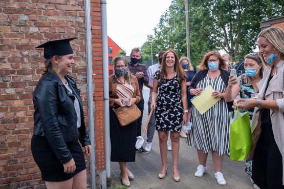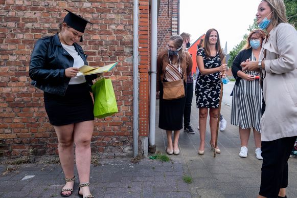 “Normaal gezien krijgen onze zesdejaars hun diploma tijdens een grote receptie op school, met wel honderden aanwezigen. Door corona moest het nu een pak kleiner, om de veiligheid te kunnen garanderen. We vonden het echter belangrijk om ook de ouders van onze leerlingen zo veel mogelijk bij dit bijzondere moment te betrekken”, zegt directeur Karen Fraters.